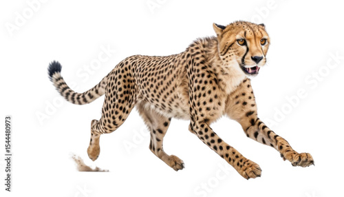 Wild big cat portrait, a leopard with fur and spots, a dangerous predator on a white background