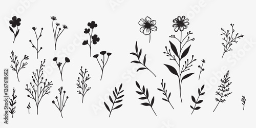 Wild Flower Graphics Vector silhouette illustration design black and white art