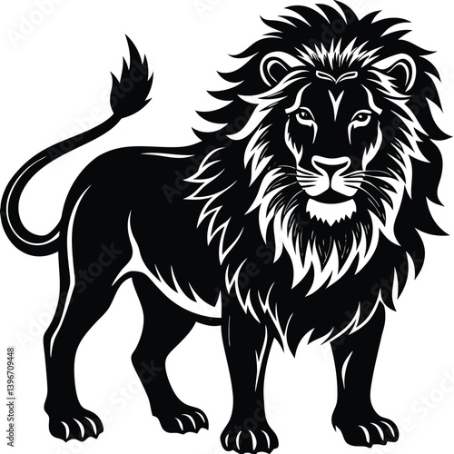 Wild lion head vector illustration, a black and white tribal art drawing