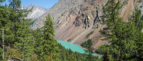 Wild mountain gorge with a lake