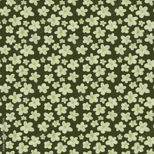 Wild prune plum trea floral bloom cream flowers on natural green hand painted seamless spring pattern
