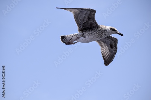 Wild seagull flying free
