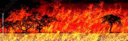 Wildfires or forest fire burning with a lot of smoke.Represents a hot flame.nature conservation concept.Global warming crisis.