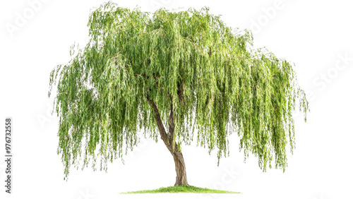 Willow tree with drooping branches isolated on transparent background, PNG file