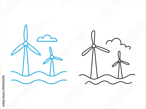 Wind Energy Icon Set, Wind Energy Icon Set black and blue - Wind Turbine And Renewable Power Line Vector Illustration