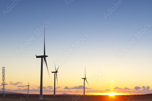 Wind turbines at sunset, Whitelee Wind Farm, Scotland