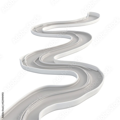Winding Grey 3D Rendered Road Track or Path Element on Transparent Background