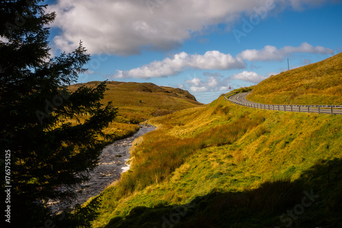 Winding Road and Flowing Stream in the Mountains of Snowdonia, Wales