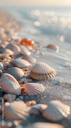 Windswept Coastal Serenity:Pebbles and Shells Adorn a Muted,Atmospheric Shore