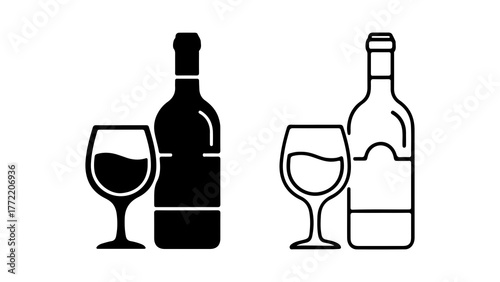Wine bottle and glass with transparent background