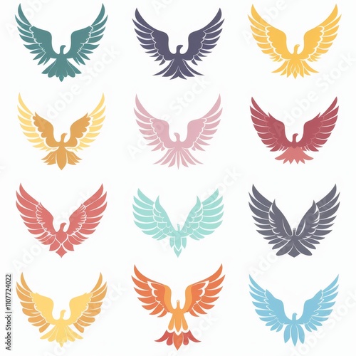 Wings flat icon, angel wings emblem, bird feathers minimal silhouette, pigeon sign, spirituality symbol