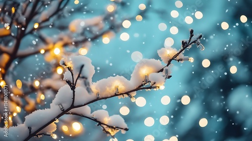 Winter Holiday Lights With Snow-covered Trees And Blue Background