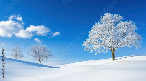 Winter Landscape With Snow Covered Trees And Blue Sky