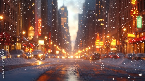 Winter night city in festive Christmas and New Year lights bokeh
