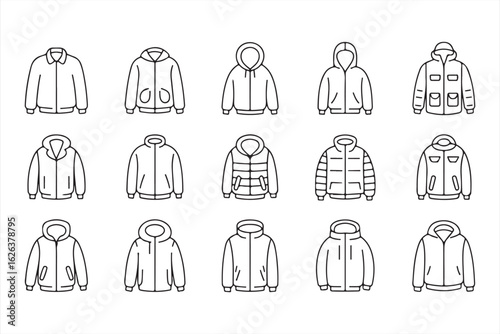 Winter Outerwear and Hoodies Icons in Sketch Format