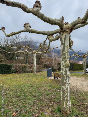Winter Pruned Plane Trees in Park