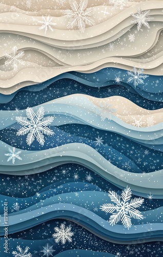Winter Snowflake Papercut Art Design for Holiday Background
