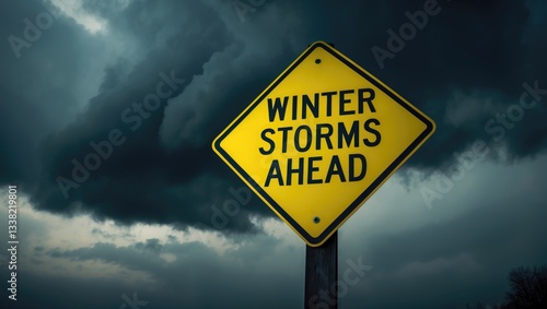 Winter Storms Warning Sign with Background Clouds