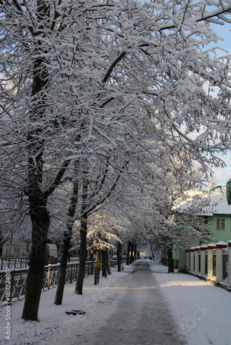 winter street covered with snow,