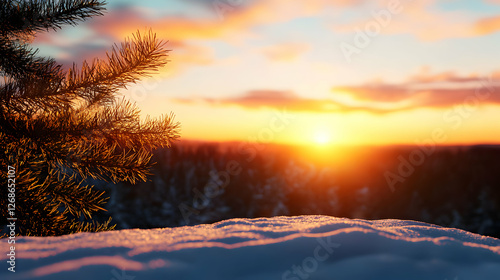Winter Sunset Over Snow Covered Forest