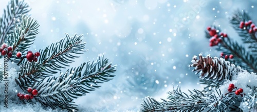 Winter themed Christmas greetings with a festive background and copy space image
