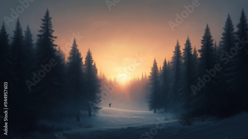 Winterliche Skiwanderung bei Sonnenuntergang in der verschneiten Landschaft