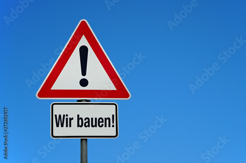 Wir bauen mit Achtung Schild
