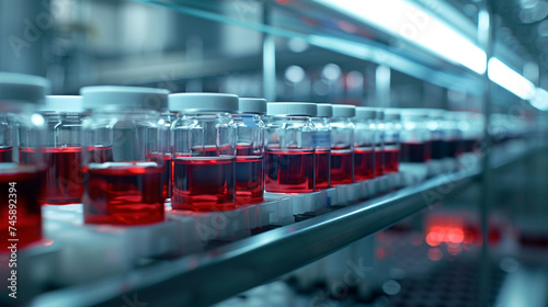 With precision and grace, a conveyor system transports medical test tubes and drugs in close-up, symbolizing the tireless efforts of researchers and healthcare professionals in the