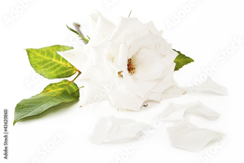 Withered white rose with fallen petals