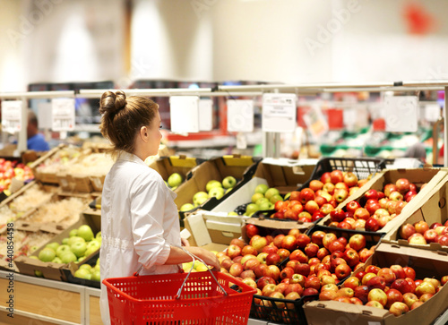 Woman buying fruits and vegetables at the market
