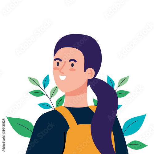 woman cartoon with overall leaves design, Girl female person people human and social media theme Vector illustration