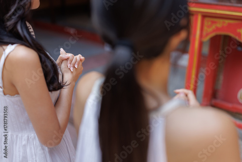 Woman clasping hands praying for spiritual devotion