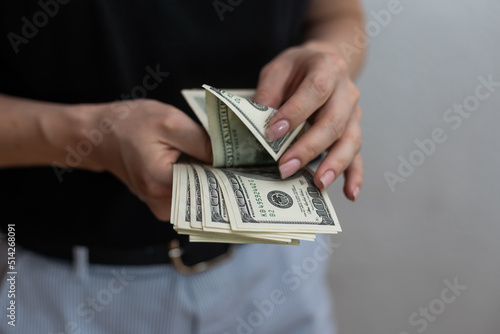 Woman counting money, US dollars