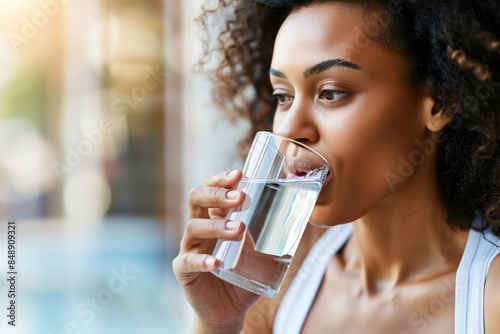 Woman Drinking Water for Hydration and Health in Bright Setting.