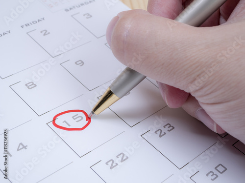 Woman hand circle date on calendar 1