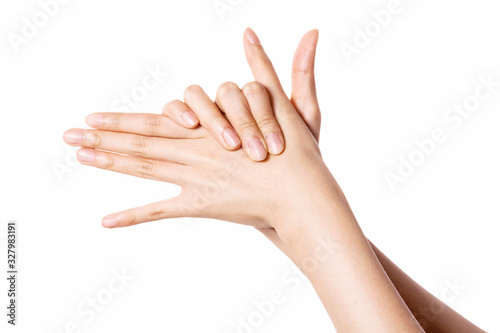 woman hand gesture (a dog) isolated on white.