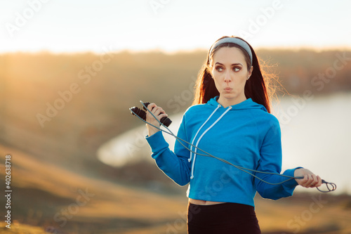 Woman Holding a Skipping Rope Exercising Outdoors