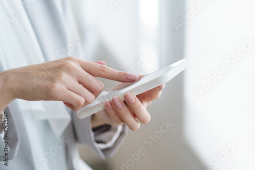 Woman holding a smartphone indoors