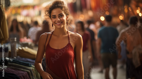 Woman in Maroon Tank Top Shopping at Outdoor Market