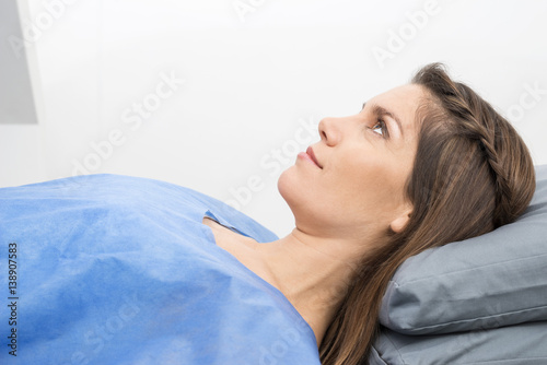 Woman In Protective Clothing Lying On Hospital Bed