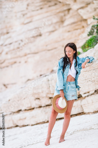 Woman laying on the beach enjoying summer holidays looking at the sea