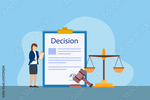 Woman looking at decision document vector illustration flat design