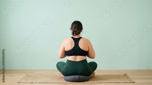 Woman Meditating on Yoga Mat in Studio.