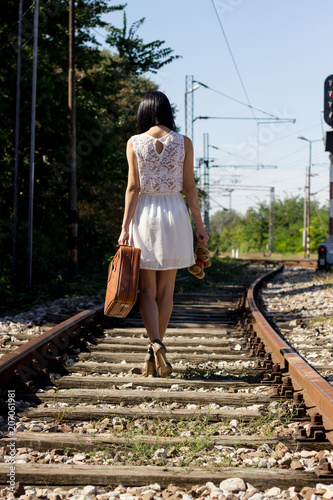 Woman on the railway walking
