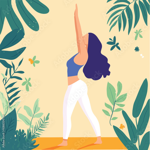 Woman Practicing Yoga Among Tropical Leaves in a Calm Space