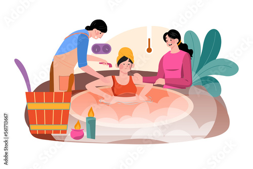 Woman relaxing in the sauna.