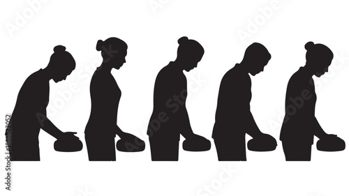 Woman Silhouette Exercising in Various Positions Isolated on White Background