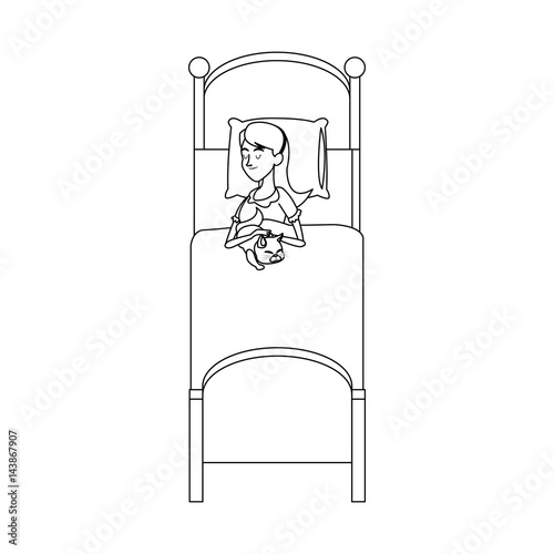 woman slepping at the bed, cartoon icon over white background. vector illustration