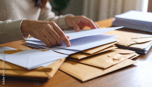 Woman Sorting Mail At Home Office