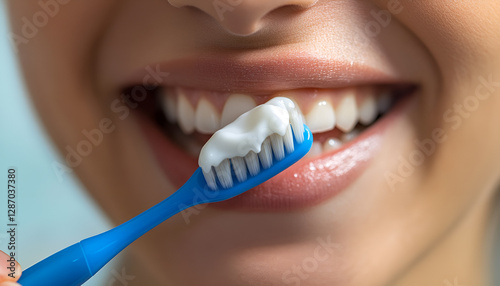 Woman, toothpaste and brush for teeth whitening with closeup in studio with healthy gums and hygiene results. Female person, dental product and cleaning mouth for fresh breath by white background
